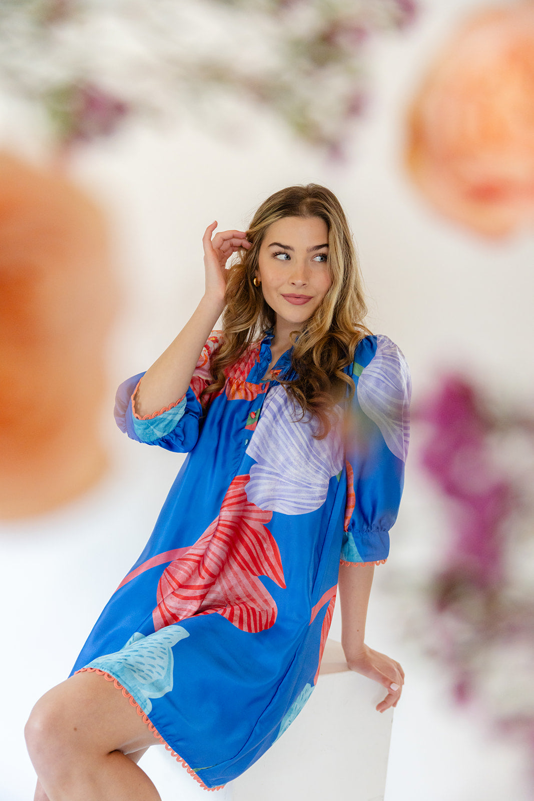 The Lori Dress in geo floral was made for making a statement! Featuring voluminous sleeves and a playful trim, it's designed for comfort and charm in every step.