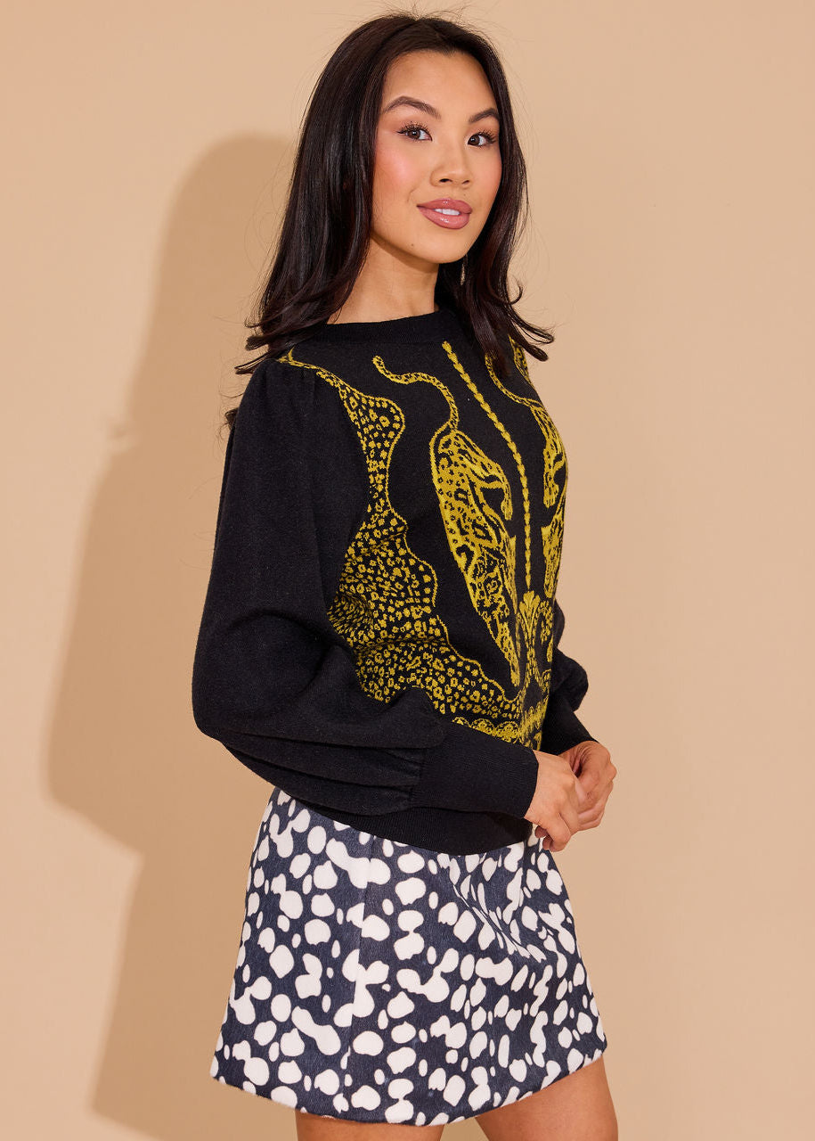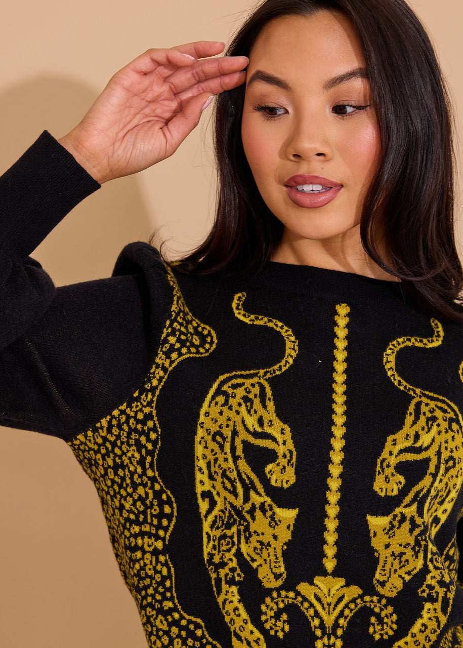 Perfect for a party or hanging at home, The Lucie Sweater in our Pouncing Panther print is cozy and chic!
