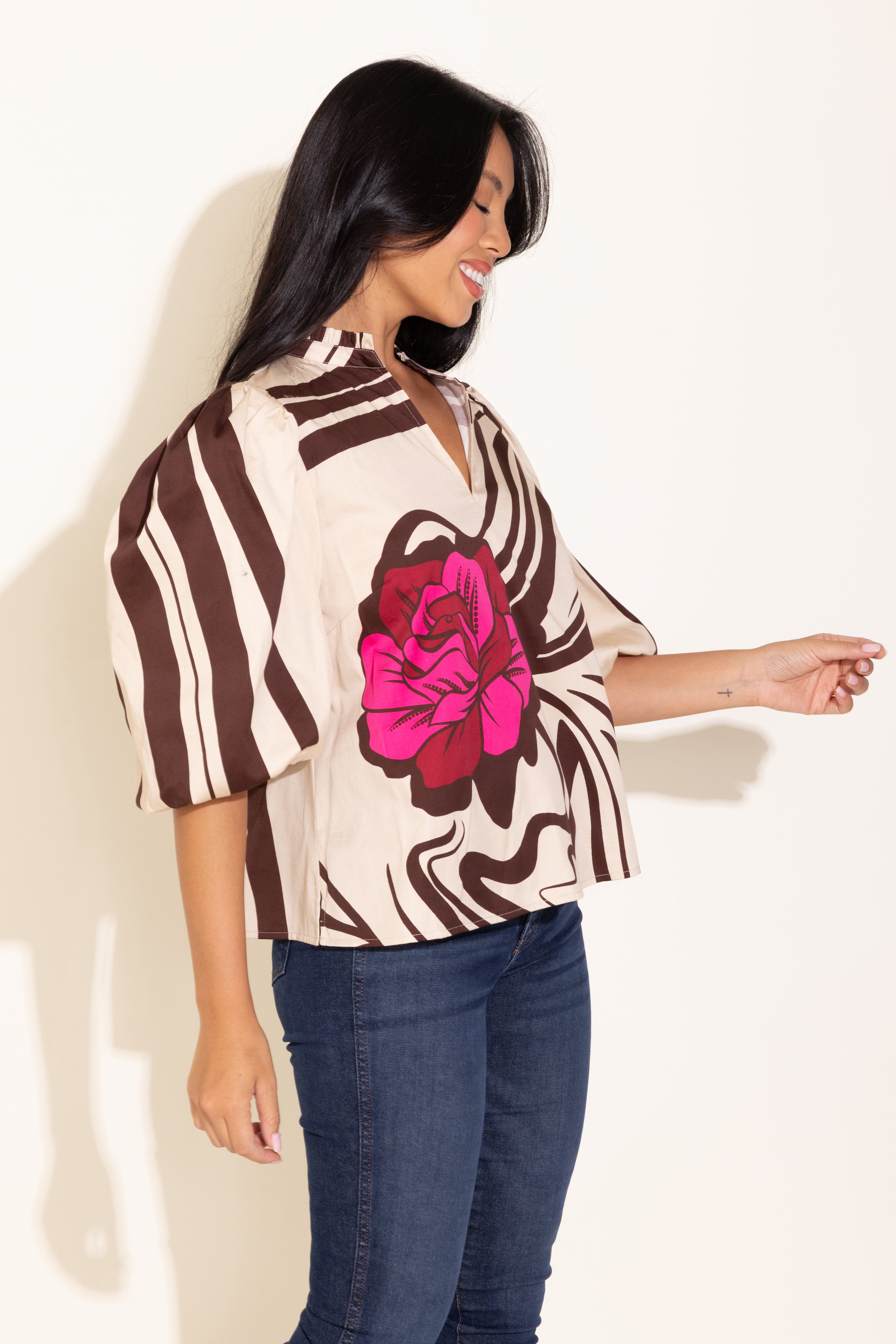 The Ali Top is sophistication meets fun! In our color desert rose, we love the collar detailing and puff sleeves. Throw it on with our Danny Skirt to complete the look!