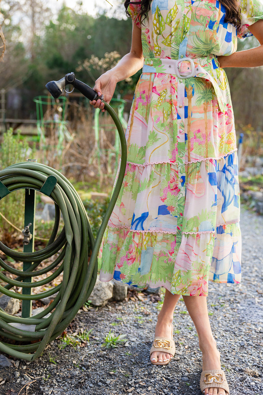 The Rachel Dress is perfect for any occasion, offering a modest yet chic look that will leave you feeling confident, comfortable, and fabulous! The Rachel is a short sleeve button down dress with a matching adjustable belt and tiered skirt.