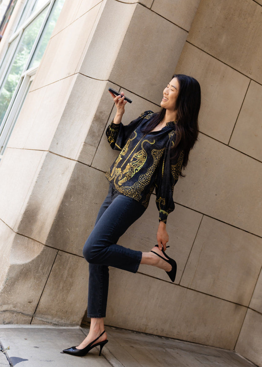 The Phoebe top is your new perfect grab-and-go top! It will pair perfectly with your favorite pair of slacks or shorts to complete the look! The Phoebe features a v-neck, cuffed sleeve, and a ruffled collar stand.