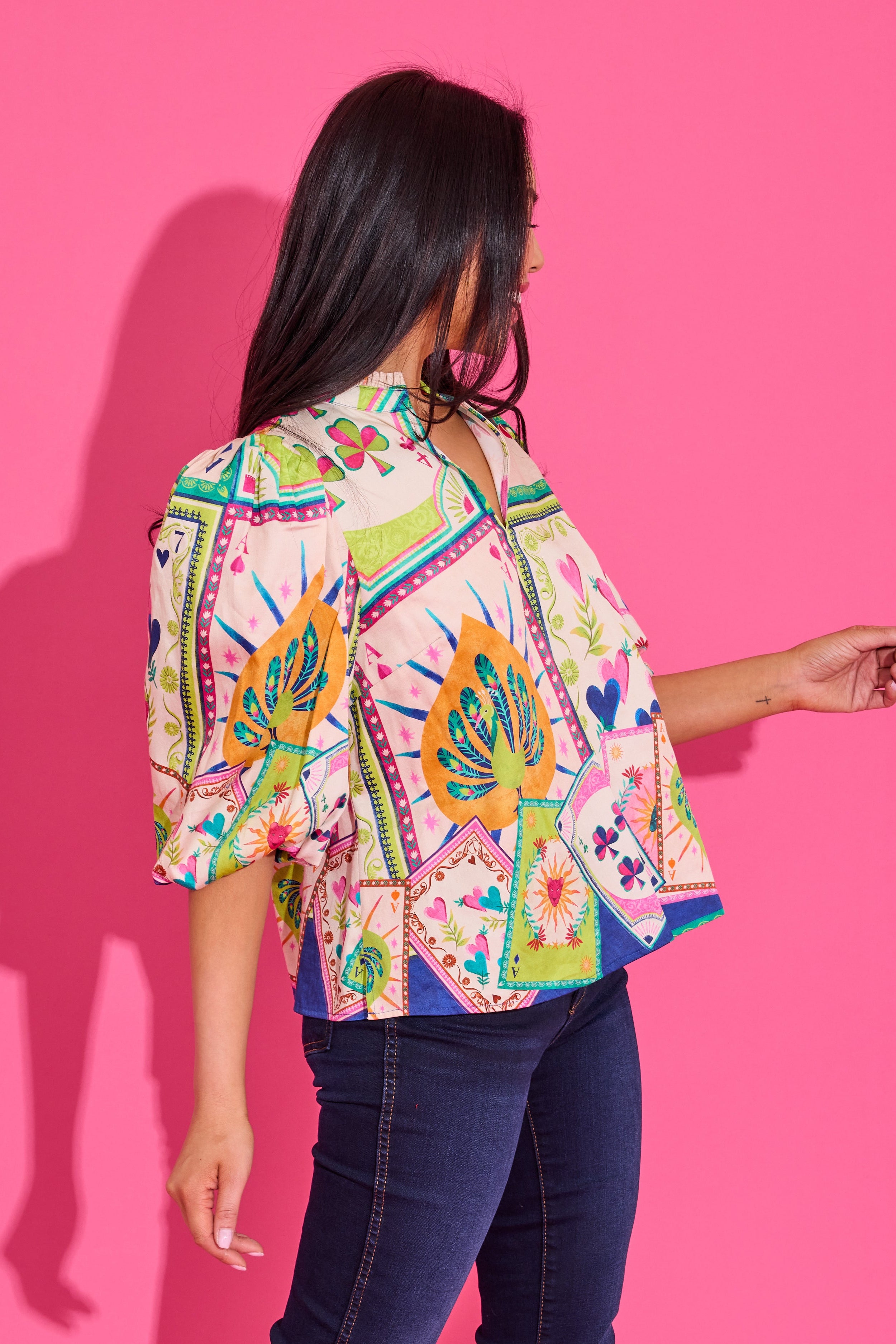 The Ali Top is sophistication meets fun! In our color high roller, we love the collar detailing and puff sleeves. Throw it on with our Danny Skirt to complete the look!