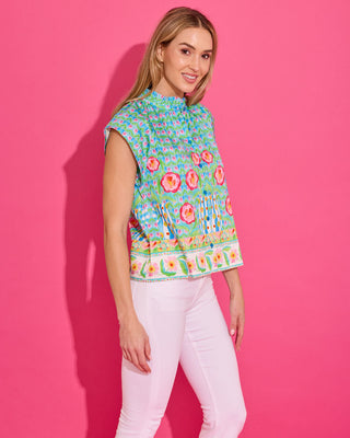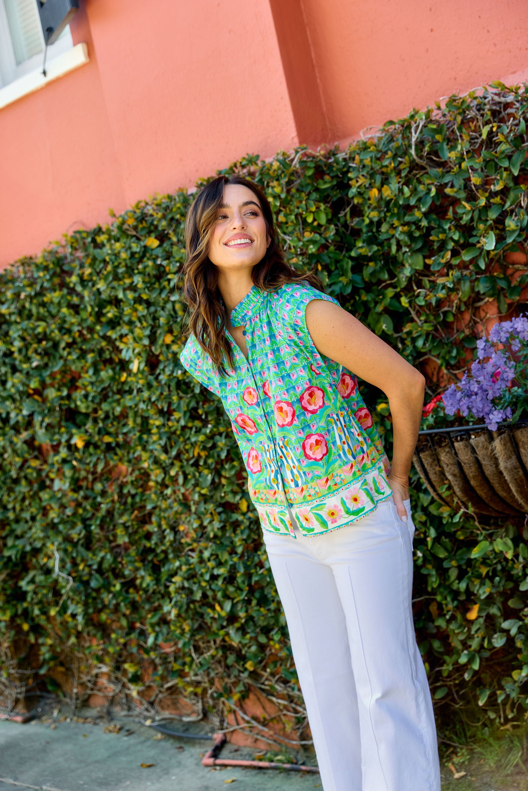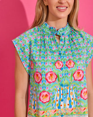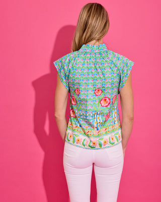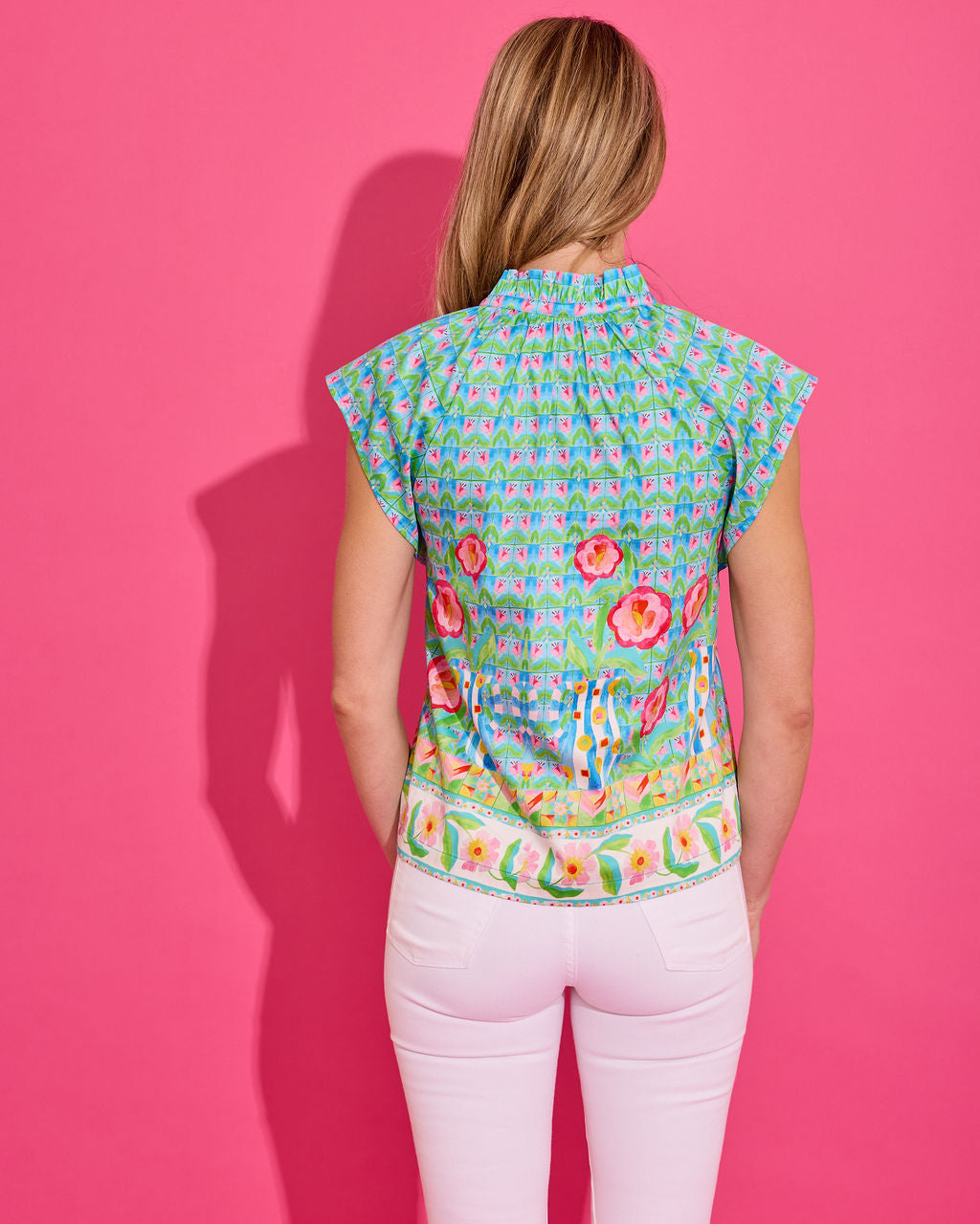 The Birkin Top will be your new favorite top! Fun and stylish, the Birkin features a fun print, a button front, and a ruffled collar stand.